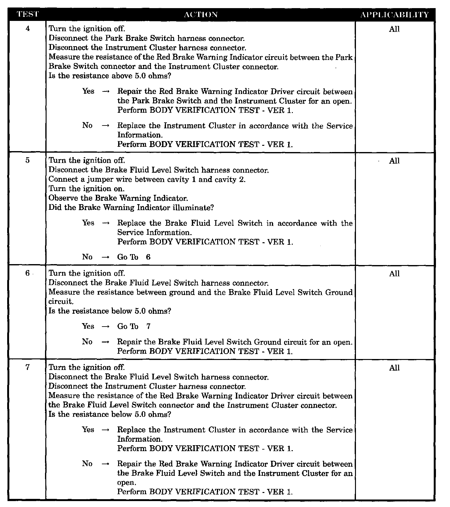 - Park brake switch red brake warning indicator driver circuit open