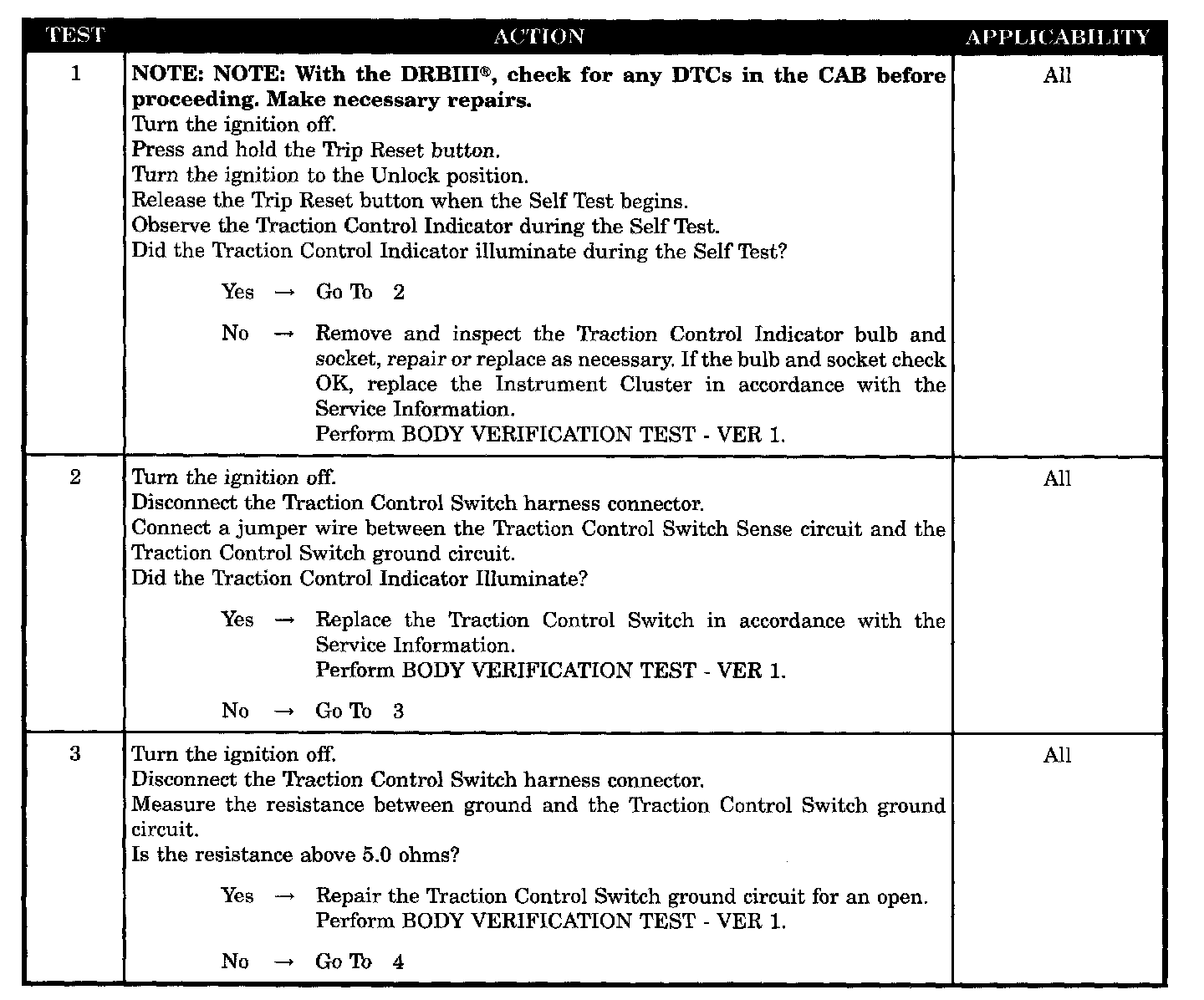 Traction Control Indicator Inoperative