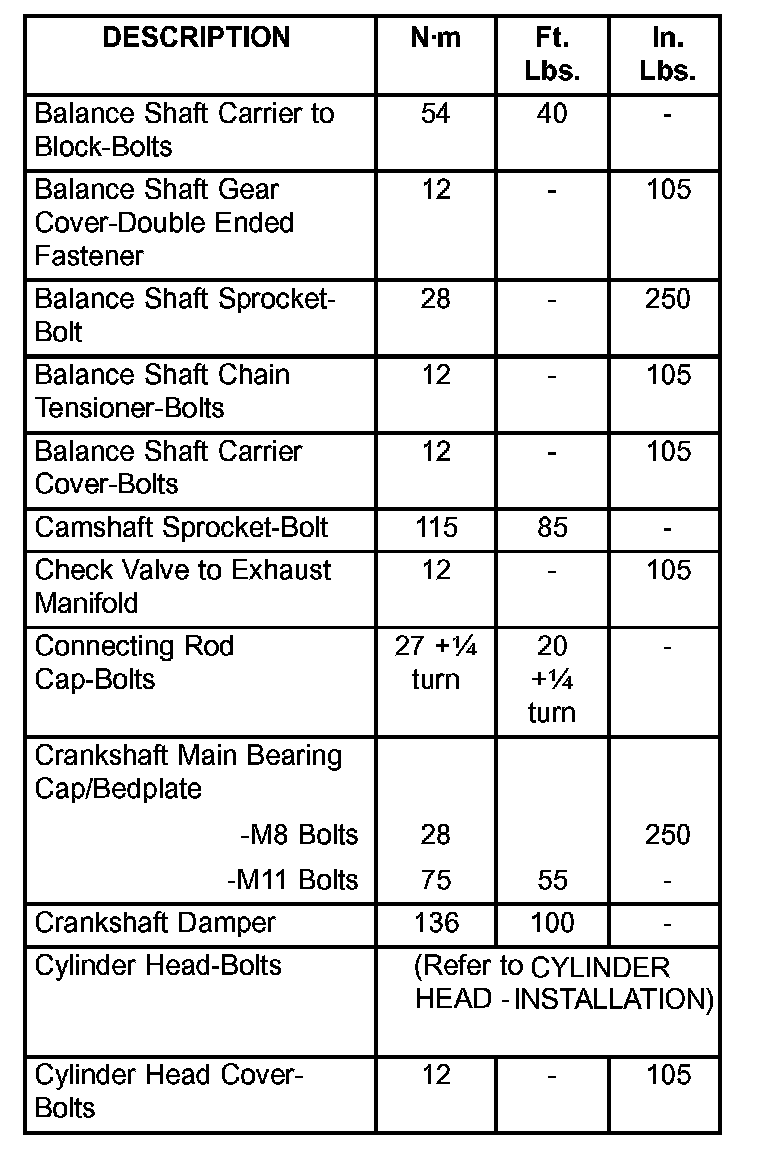 Engine Torque Specifications