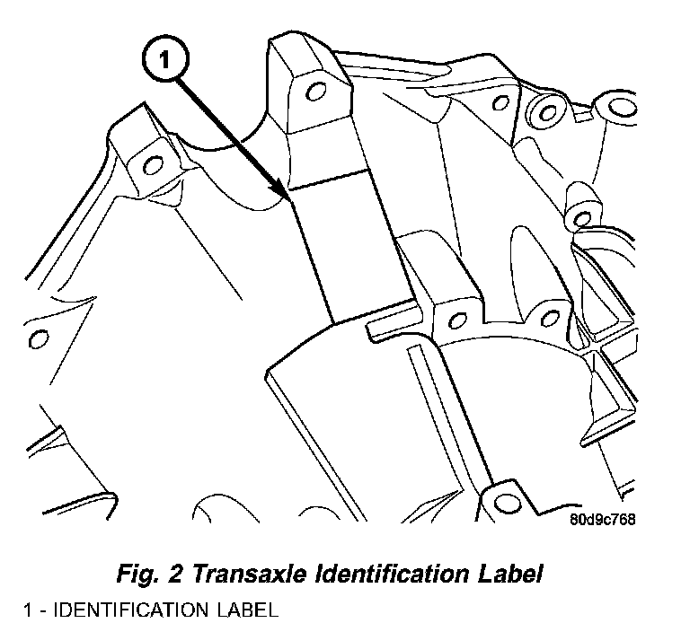 The 40TE transaxle is identified by a barcode label that is fixed to the transaxle case as shown in (Fig. 2).