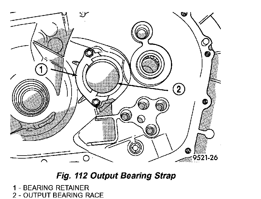 2. Remove screws at output bearing retainer strap (Fig. 112).