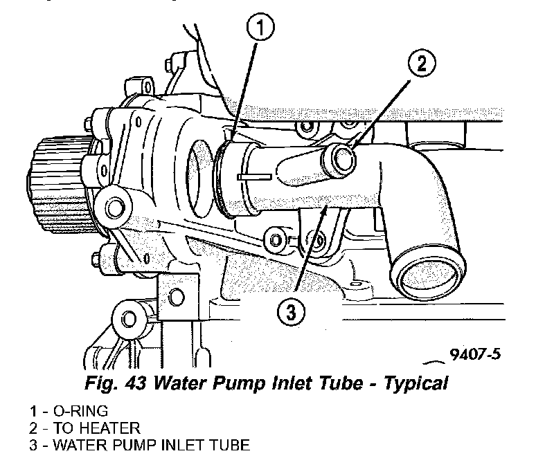 4. Reconnect lower radiator hose and heater hose to inlet tube (Fig. 43).