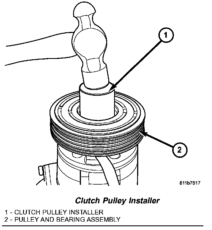 NOTE: A distinct change of sound during the clutch pulley tapping process indicates that the pulley and bearing assembly has bottomed out against the compressor housing.