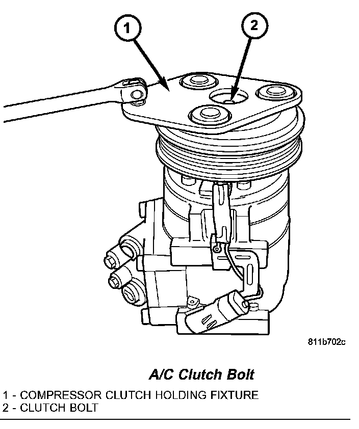 REMOVALNOTE: The A/C compressor clutch can be serviced in the vehicle. The refrigerant system can remain fully-charged during compressor clutch, pulley and bearing assembly, or coil replacement.