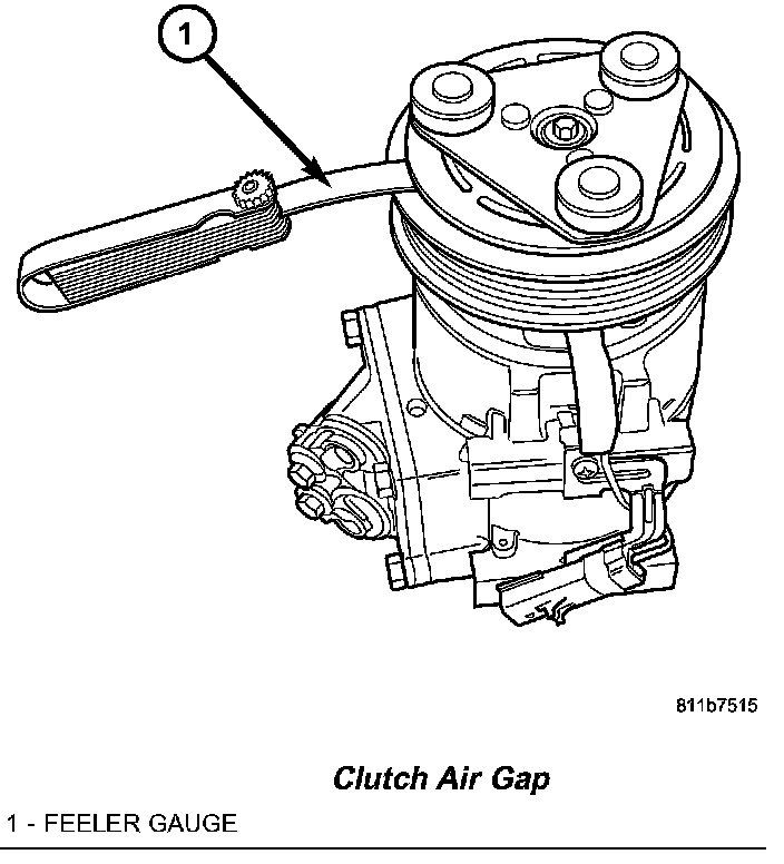 NOTE: When installing an original, or a new clutch assembly, try the original shims first. When installing a clutch onto a compressor that previously did not have a clutch, use 1.0, 0.50, and 0.13 millimeter (0.040, 0.020, and 0.005 inch) shims from the clutch hardware package that is provided with the new clutch.