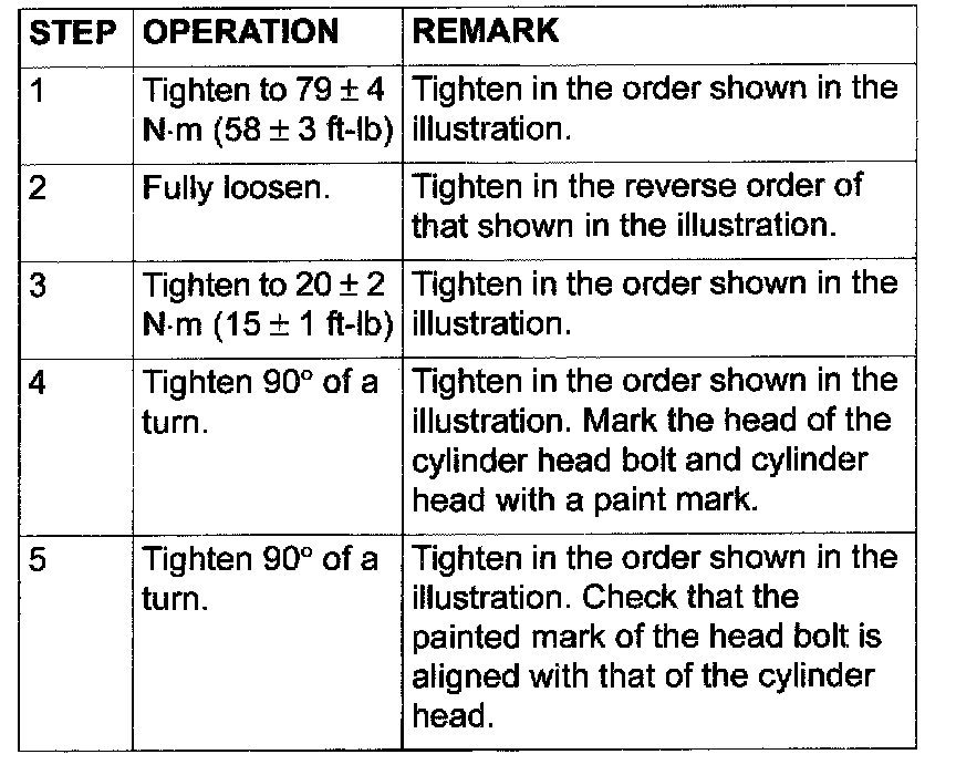 ^ Always tighten cylinder head bolts at a 90 degree angle. If it is less than 90 degree angle, the bolt will loosen.