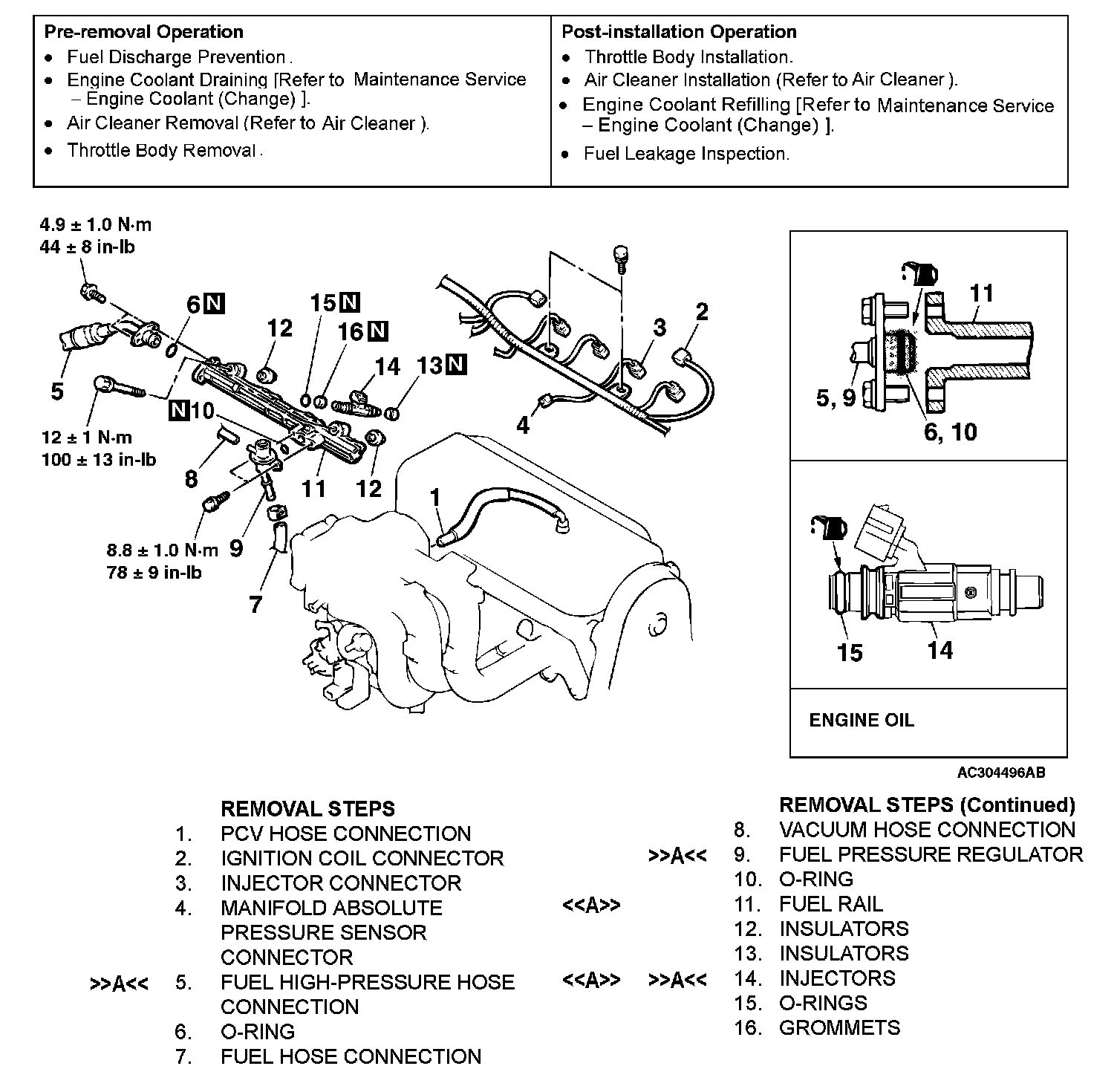 <>FUEL RAIL/INJECTORS REMOVAL