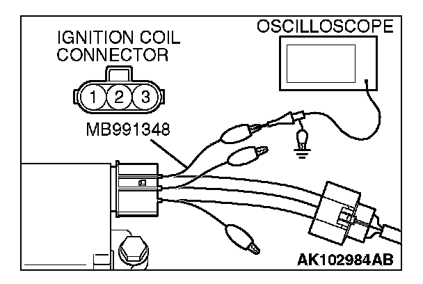 2. Connect the oscilloscope probe to ignition coil connector terminal No.3.