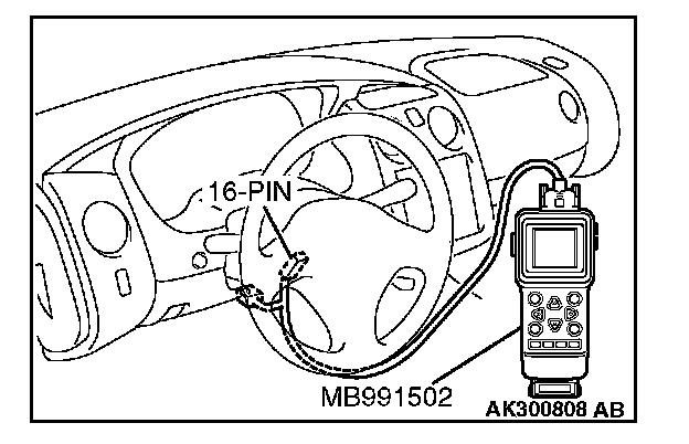 CAUTION: To prevent damage to scan tool MB991502, always turn the ignition switch to the "LOCK" (OFF) position before connecting or disconnecting scan tool MB991502.