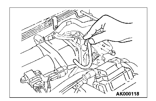 1. Remove the union joint and bolt from special tool MD998709 (adaptor hose) and instead attach special tool MD998742 (hose adaptor) to the adaptor hose.