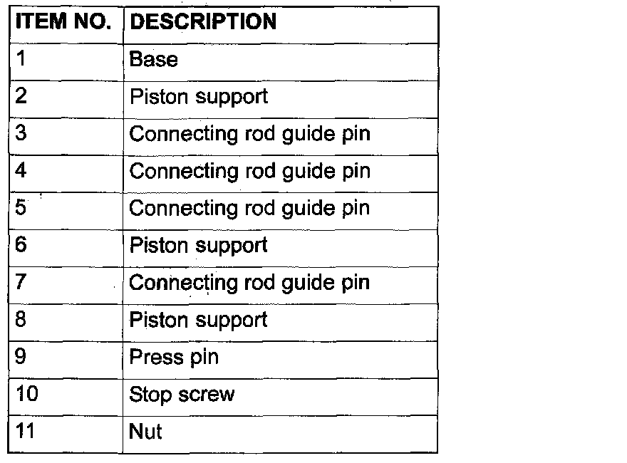 8. Remove the piston assembly from the base. Remove the guide pin and press pin from the assembly.