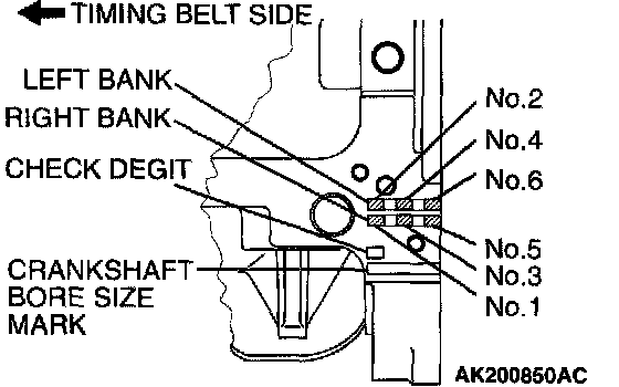 1. When replacing the piston pin, read off the cylinder bore size mark on the cylinder block as illustrated, and select a piston according to the flowing table.