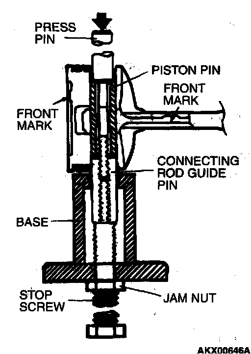 7. Press the piston pin through the connecting rod until the guide pin contacts the stop screw.