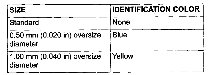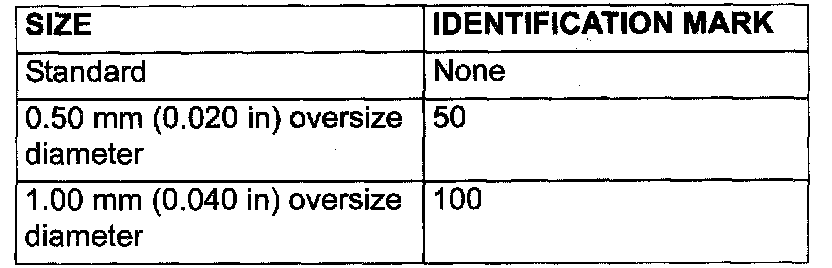 NOTE: Size marks on piston rings are as follows.