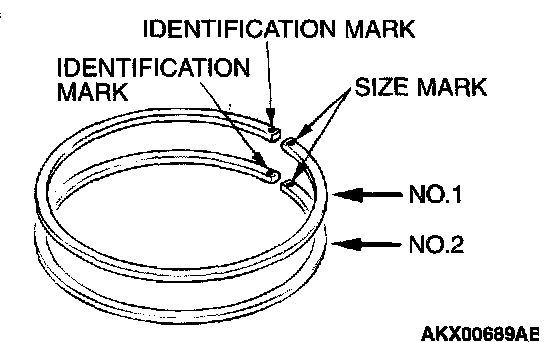 1. To prevent wrong installation, check the identification mark of each piston ring. The identification mark is stamped near the ring gap: