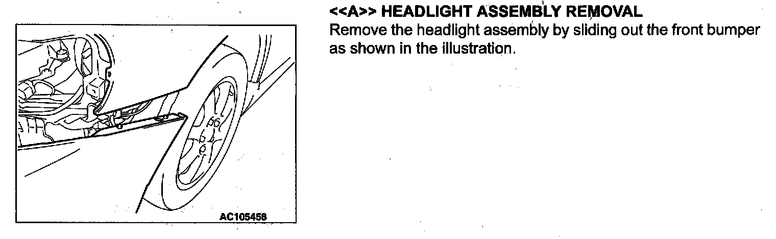 Remove the headlight assembly by sliding out the front bumper as shown in the illustration.