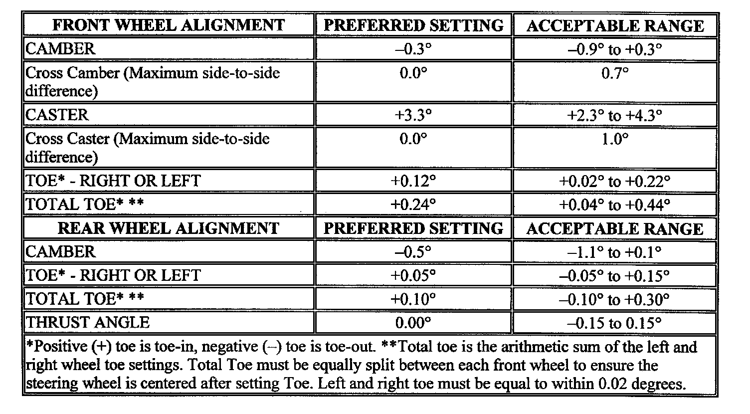 Alignment: Specifications