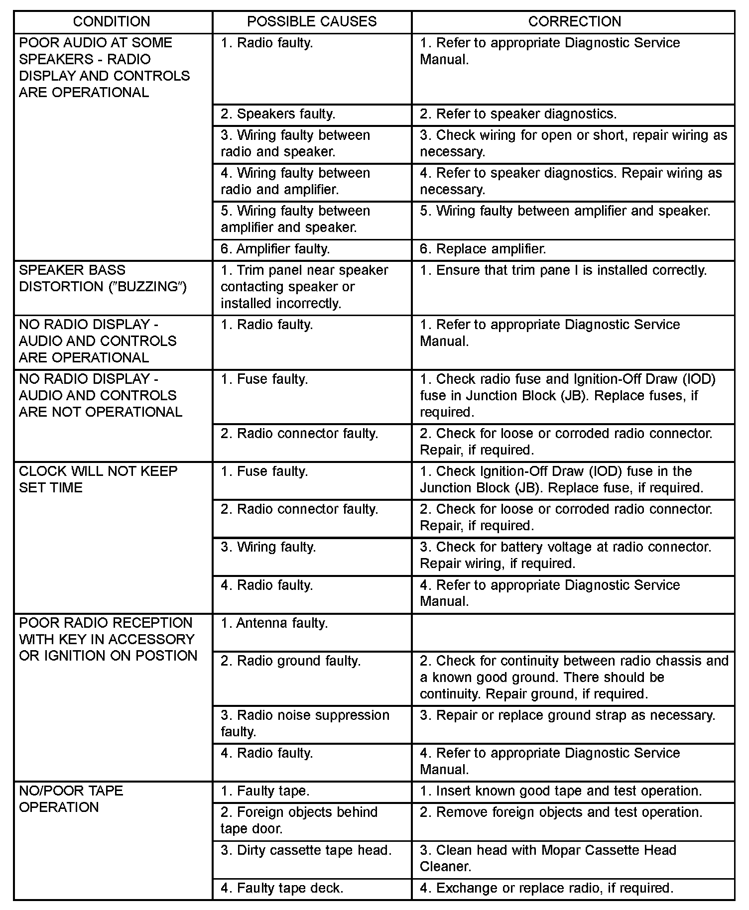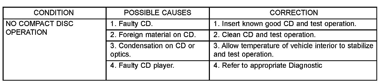 Any diagnosis of the Audio system should begin with the use of the DRB III(R) diagnostic tool. For information on the use of the DRBIII(R) , refer to the appropriate Diagnostic.