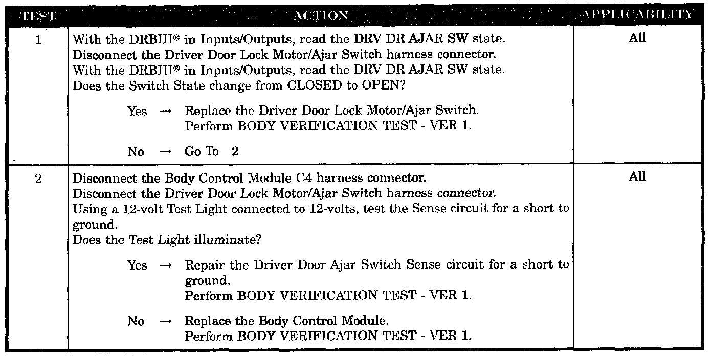 DRIVER DOOR AJAR CIRCUIT SHORTED TO GROUND