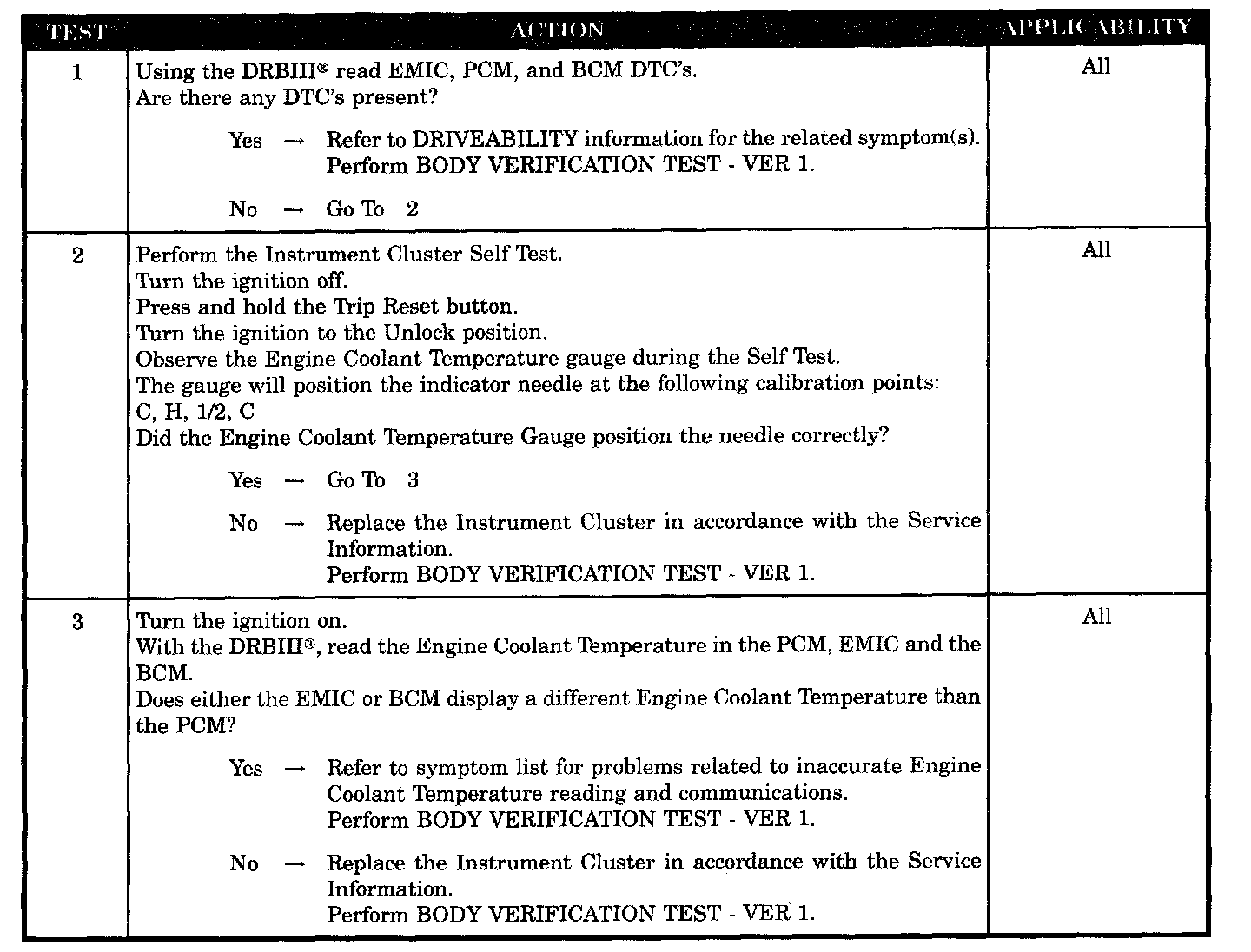 Engine Coolant Temperature Gauge Inoperative or Inaccurate