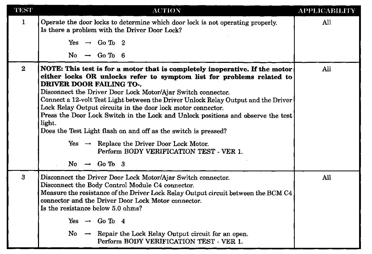 - Body control module driver door unlock relay open