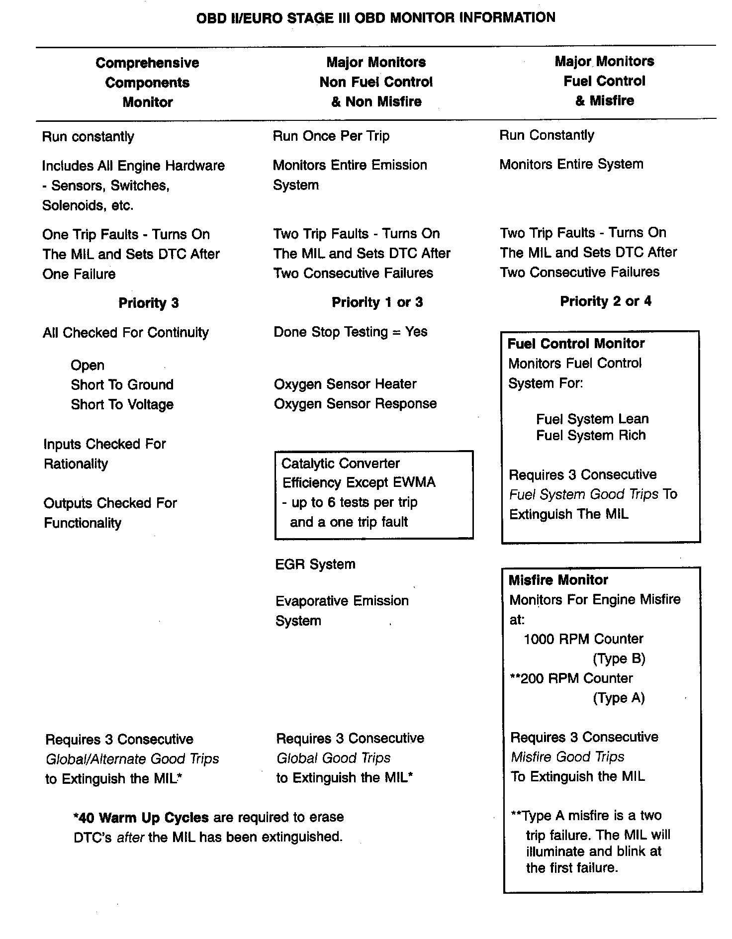 OBD II/Euro Stage III OBD Monitor Information: