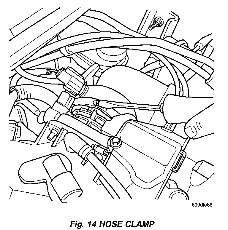 3. Install throttle body air inlet hose to throttle body Tighten hose clamp (Fig. 14).
