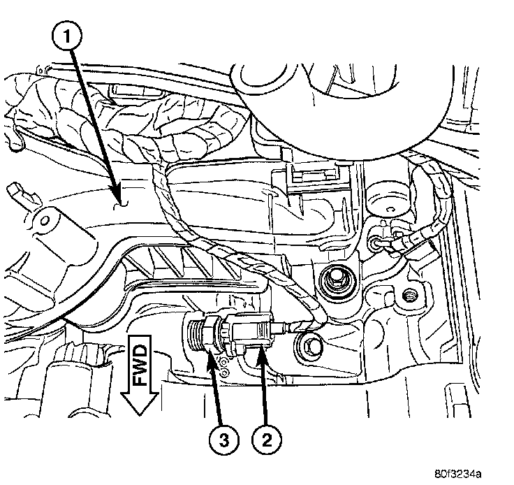 4. Disconnect electrical connector (2) from sensor (3).