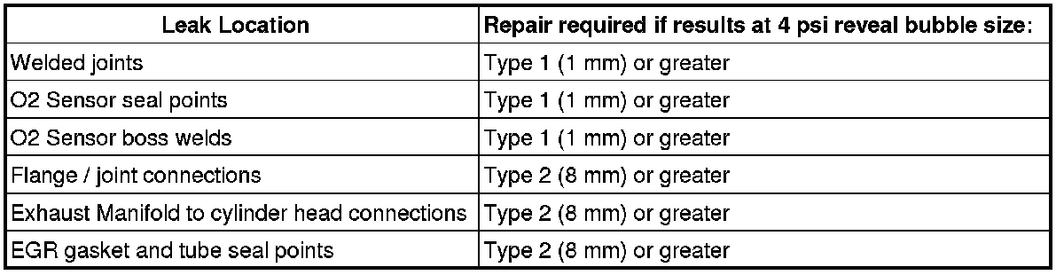 Any Type 2 or greater leaks found in flange or joint connections, exhaust manifold to cylinder head connections, or EGR gasket and tube seal points must be repaired or the components must be replaced