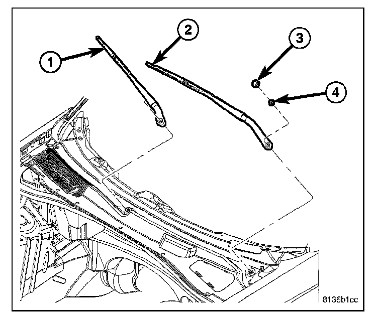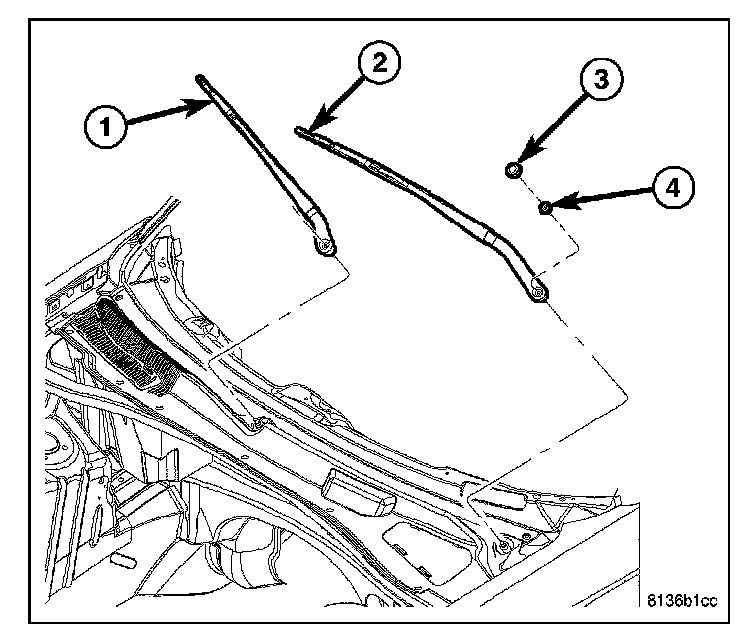 2. Remove the wiper arms (1) and (2).