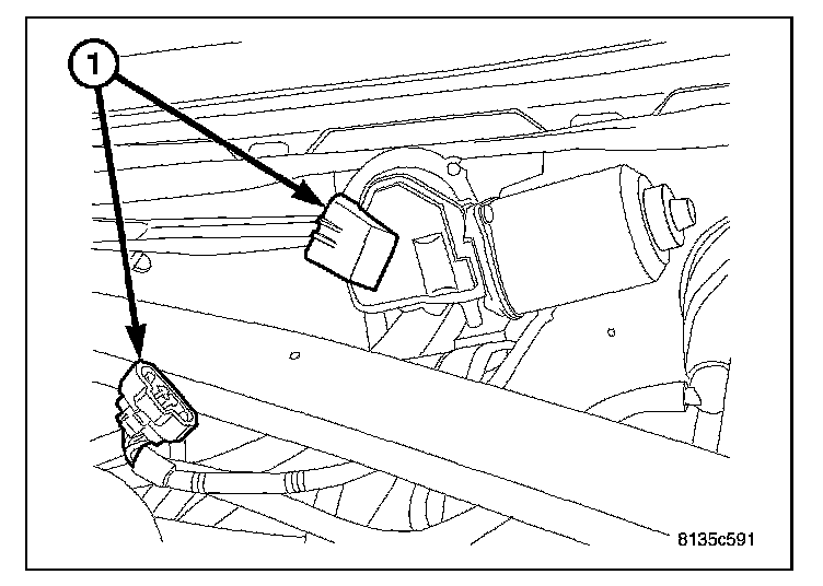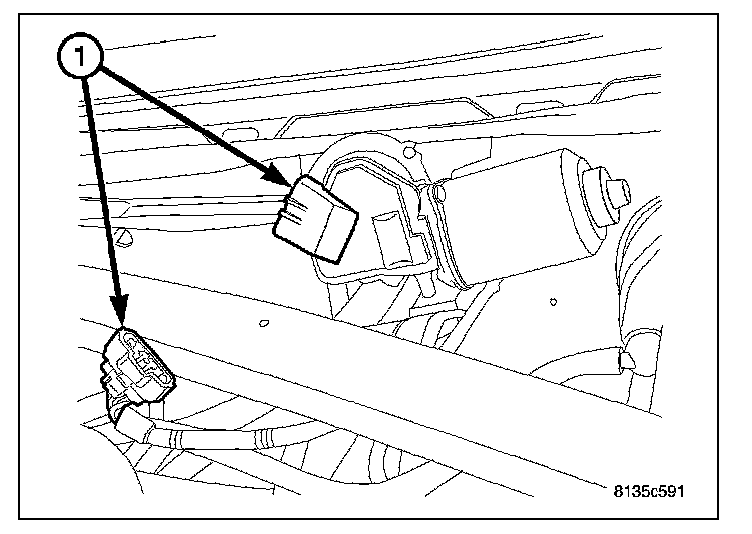 4. Disconnect the wiper motor electrical connector (1).