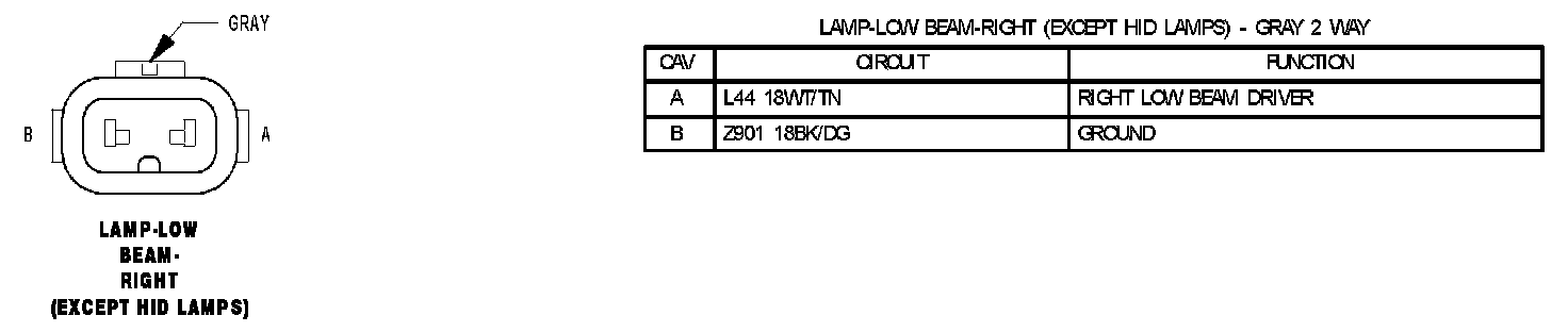 Lamp-Low Beam-Right (Except HID Lamps):