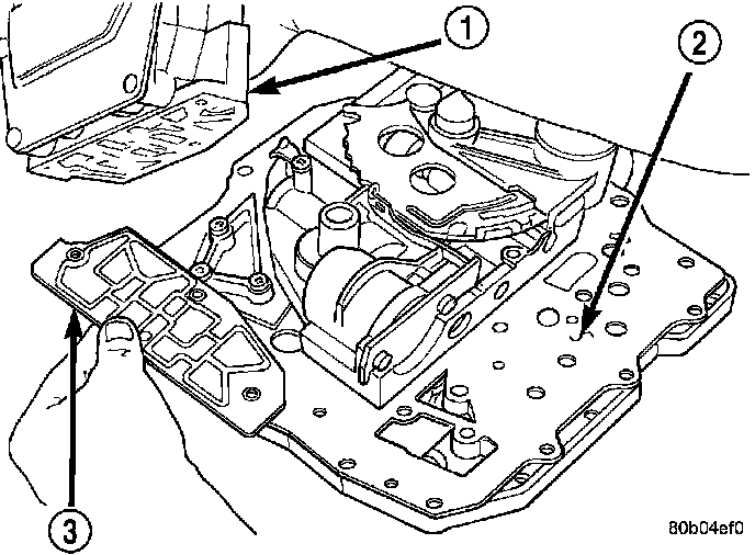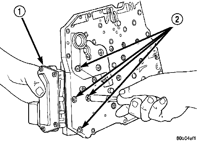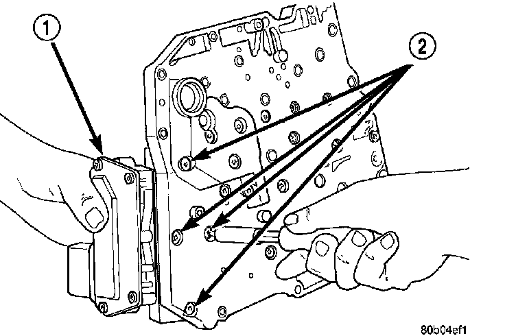 4. Remove Solenoid/Pressure Switch Assembly (1) and screen from valve body (2).