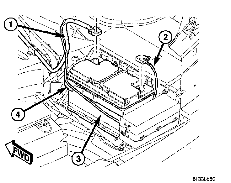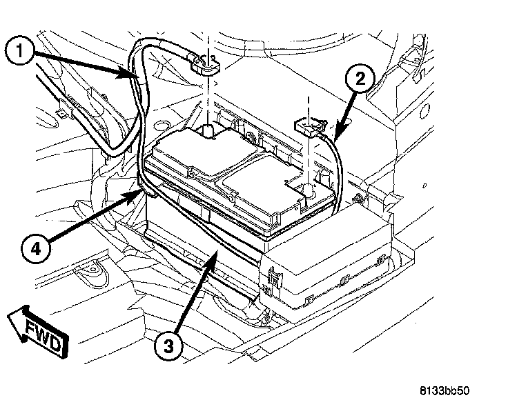 1. Disconnect and isolate battery negative cable (2) from battery post.