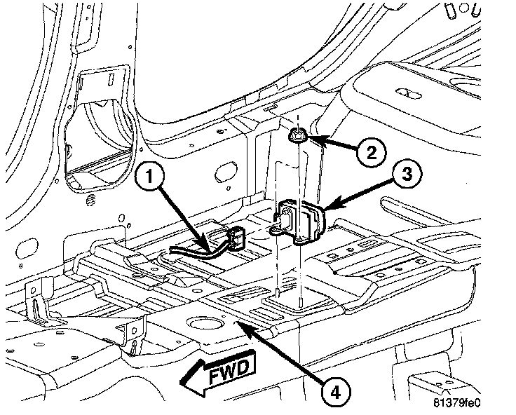 4. Remove nuts (2) mounting sensor (3) to floor pan tunnel (4).