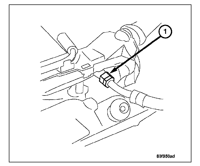 21. Disconnect the ground cable (1) at the transmission.