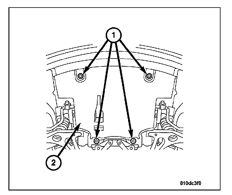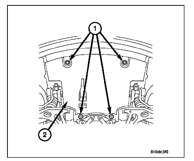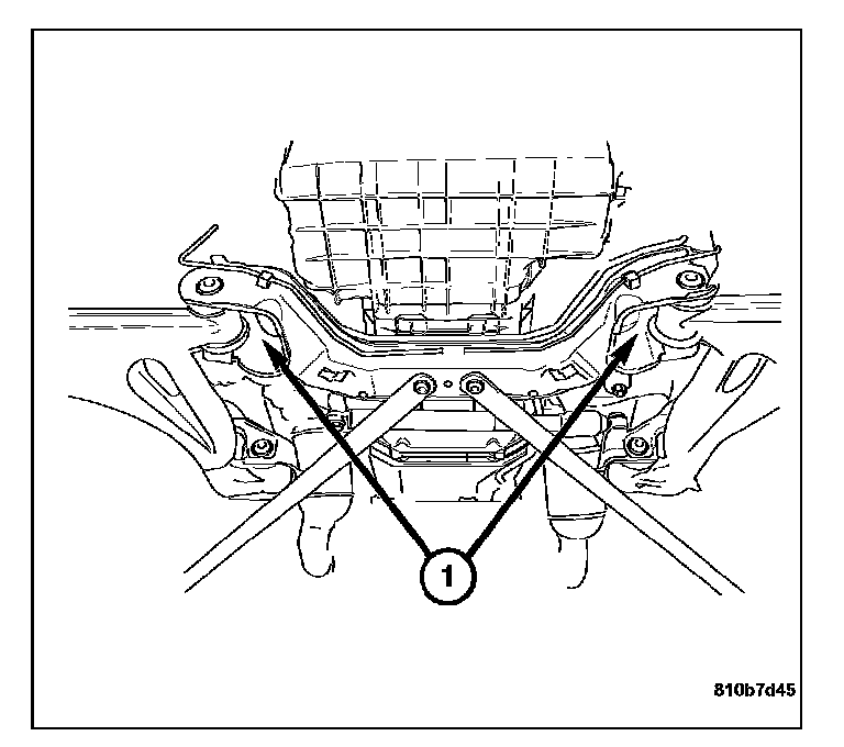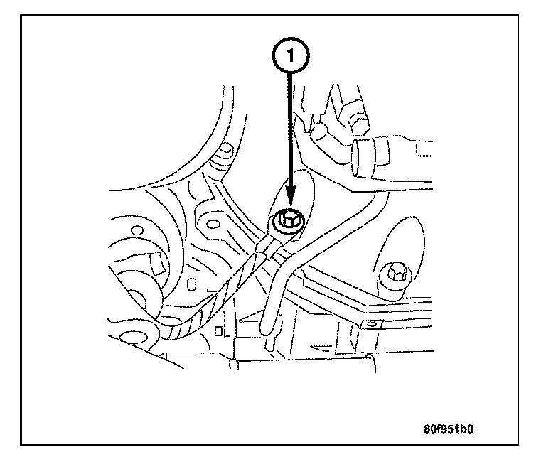 25. Remove the front engine mount bolts (1).