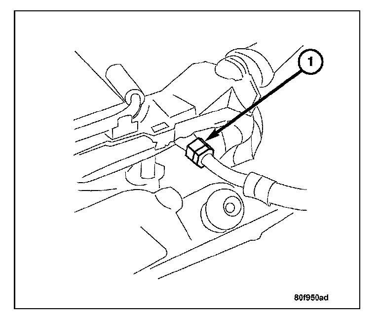 8. Install the ground cable at the transmission (1). Tighten to 40 Nm (30 ft. lbs.).