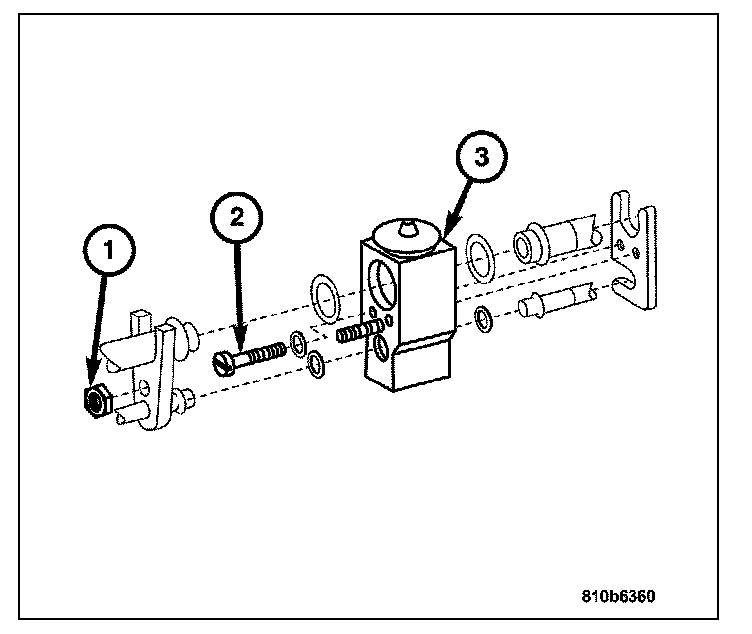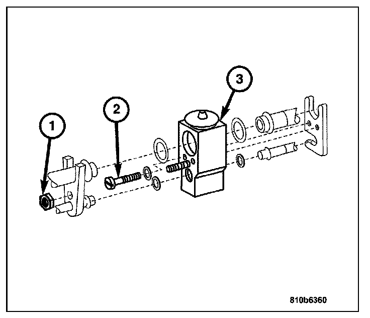 3. Remove the retainer nut (1) from the expansion valve (3).