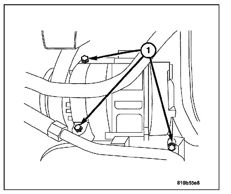6. Remove the A/C compressor bolts (1).