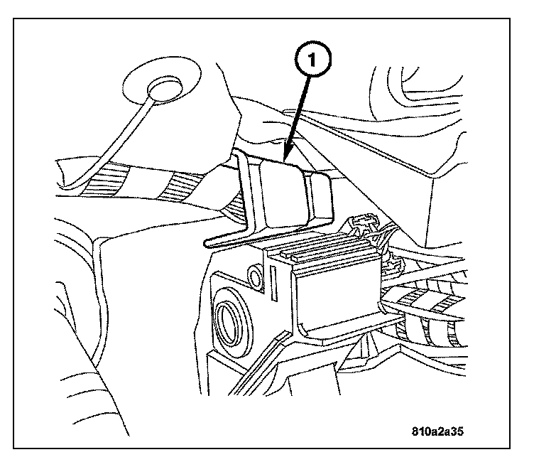 2. Slide the accelerator pedal into the bracket (1) and then onto the welded stud.