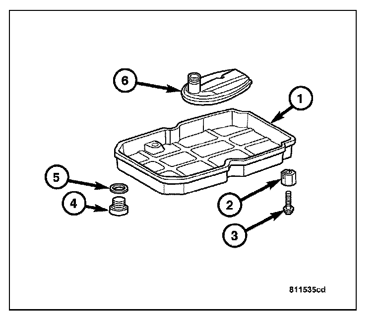 5. Remove the remaining screws (3) and the transmission pan (1).