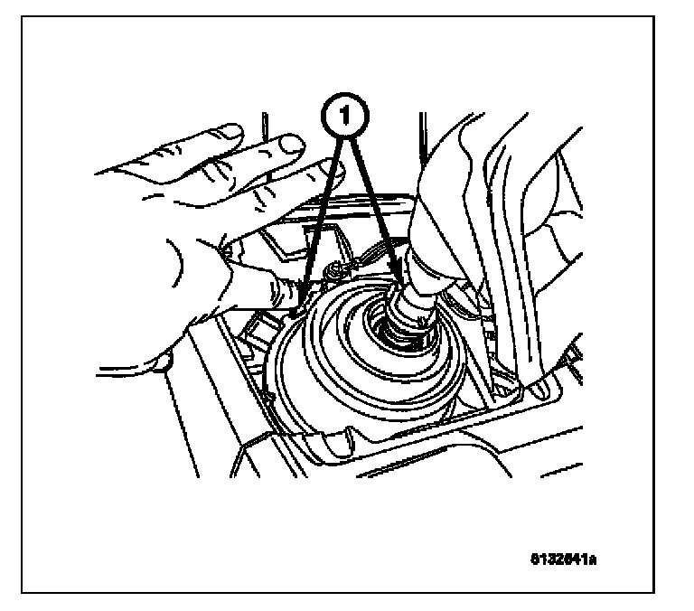 5. Depress the locking tabs (1) of the rubber shifter boot.