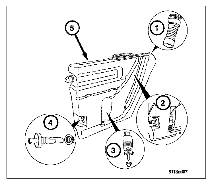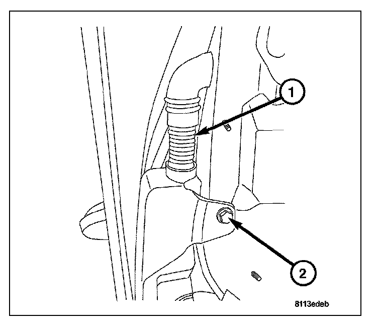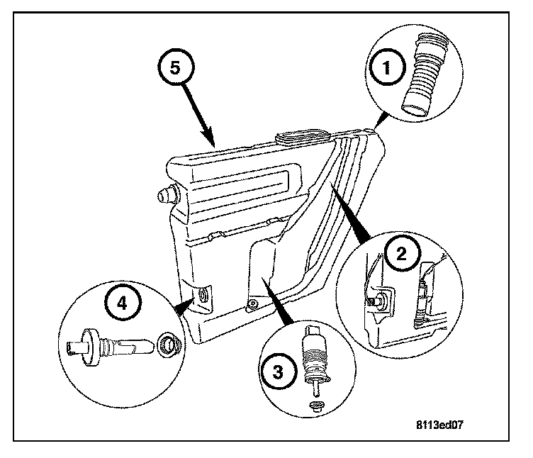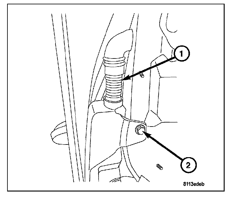 6. Remove the washer fluid filler tube (1) from the washer reservoir.