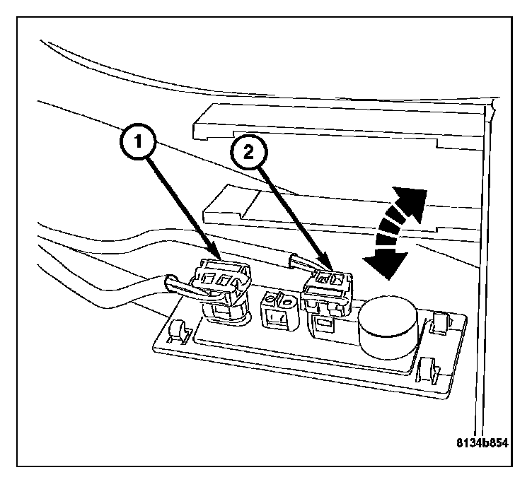 6. Connect the washer nozzle harness connector (s) (1-2) to the thermoswitch. Install the thermoswitch into the cowl grill.