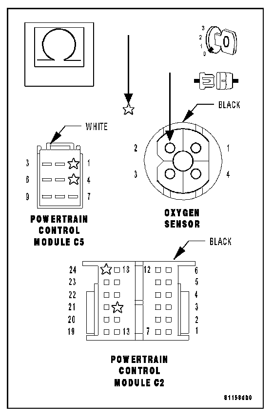 NOTE: Allow the O2 Sensor to cool down before continuing the test. Raising the hood may help in reducing under hood temperatures. Connect a jumper wire between ground and the Oxygen Sensor Heater Control circuit at the PCM harness connector leaving the harness connector connected to the PCM. Turn the ignition on.