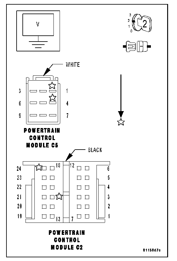 NOTE: Check the Engine Control Fuse 2 in the Relay Control Module. If it is open, multiple DTCs will be set in the PCM. Determine the cause of the open fuse before continuing using the wiring diagrams/ schematics as a guide.