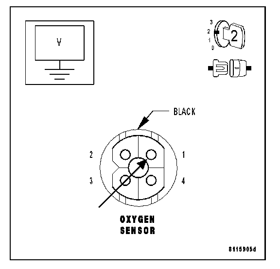 Measure the voltage of the O2 Sensor Heater Control circuit at the O2 Sensor harness connector.
