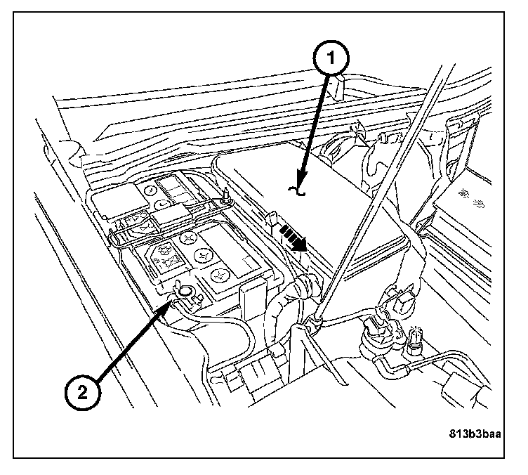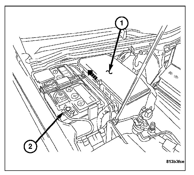 1. Disconnect the negative battery cable (2).