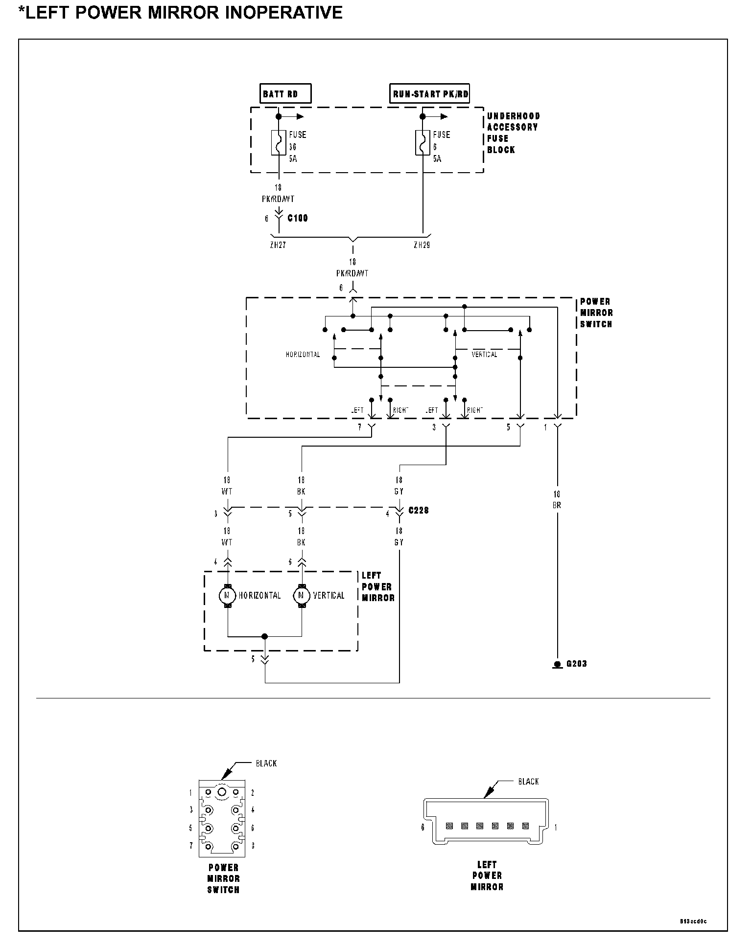 - Open left power mirror horizontal motor circuit